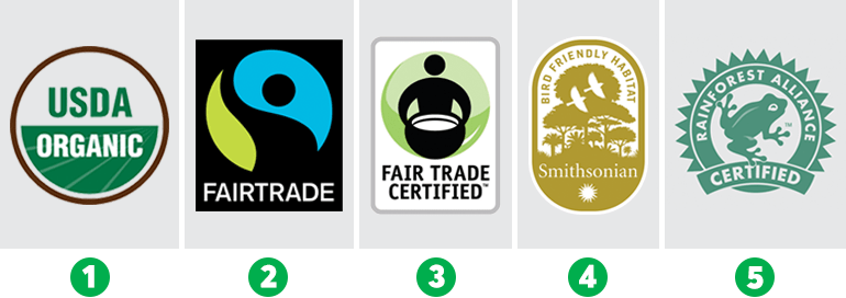 Az "organikus" kifejezést a Mezőgazdasági Minisztérium szigorúan szabályozza. A kávéfarmok esetében ez a pecsét azt jelenti, hogy nem használnak szintetikus műtrágyákat és szintetikus növényvédő szereket, amelyek károsak a gazdálkodókra és a vadvilágra. A címke biztosítja a talajminőség védelmét is.